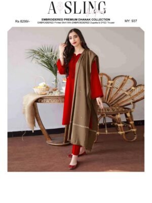 Asling 3 piece unstitched Dhanak dress with wool shawl