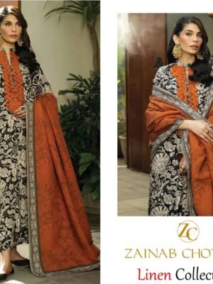 3 piece unstitched Linen dress with embroidery & patches
