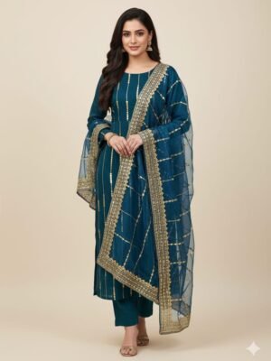 3 piece unstitched organza Zari embroidery beautiful dress