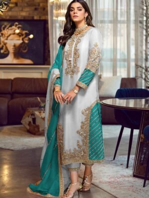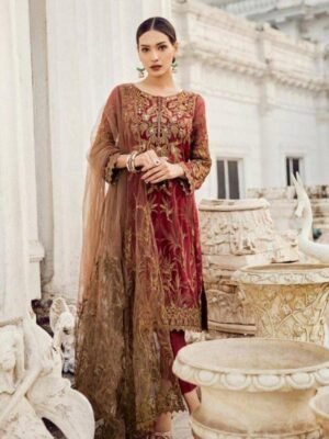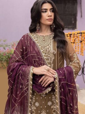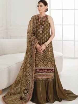 3 piece unstitched chiffon heavy embroidery wedding wear dress