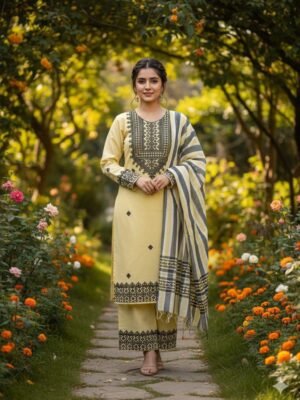 KHADI KHADDAR MULTANI STYLE EMBROIDERED UNSTITCED 3pc✓*