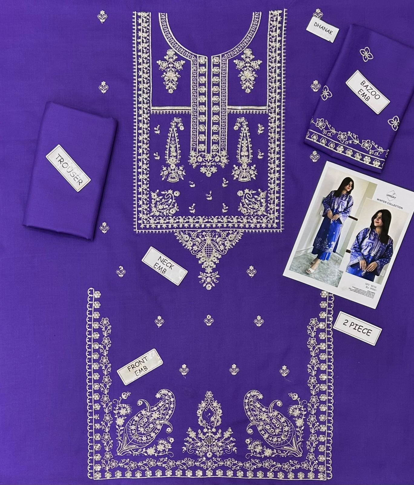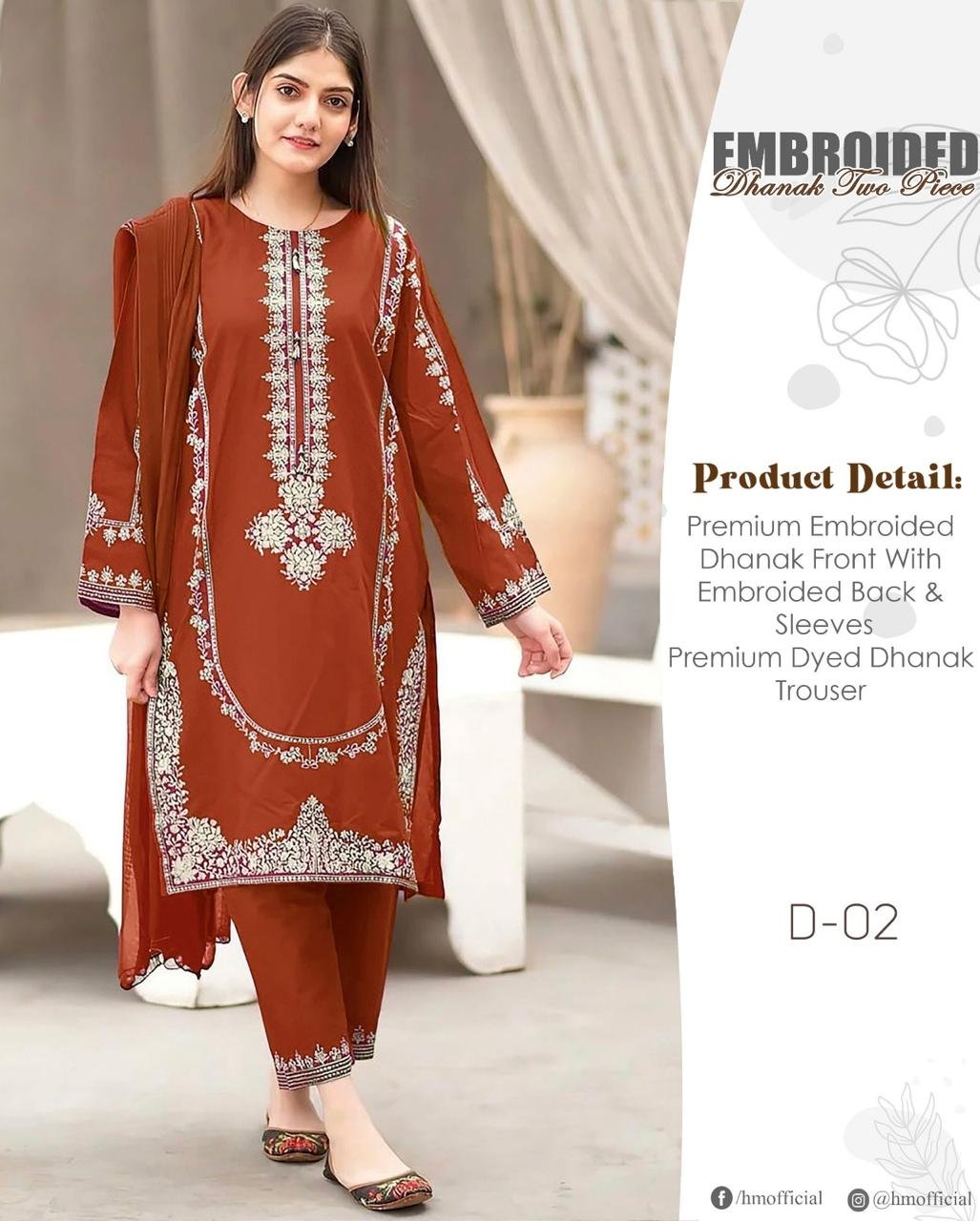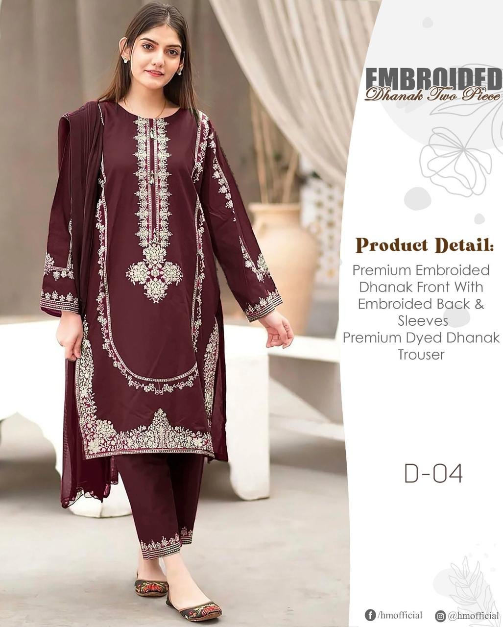 2 piece unstitched Embroided Dhanak dress