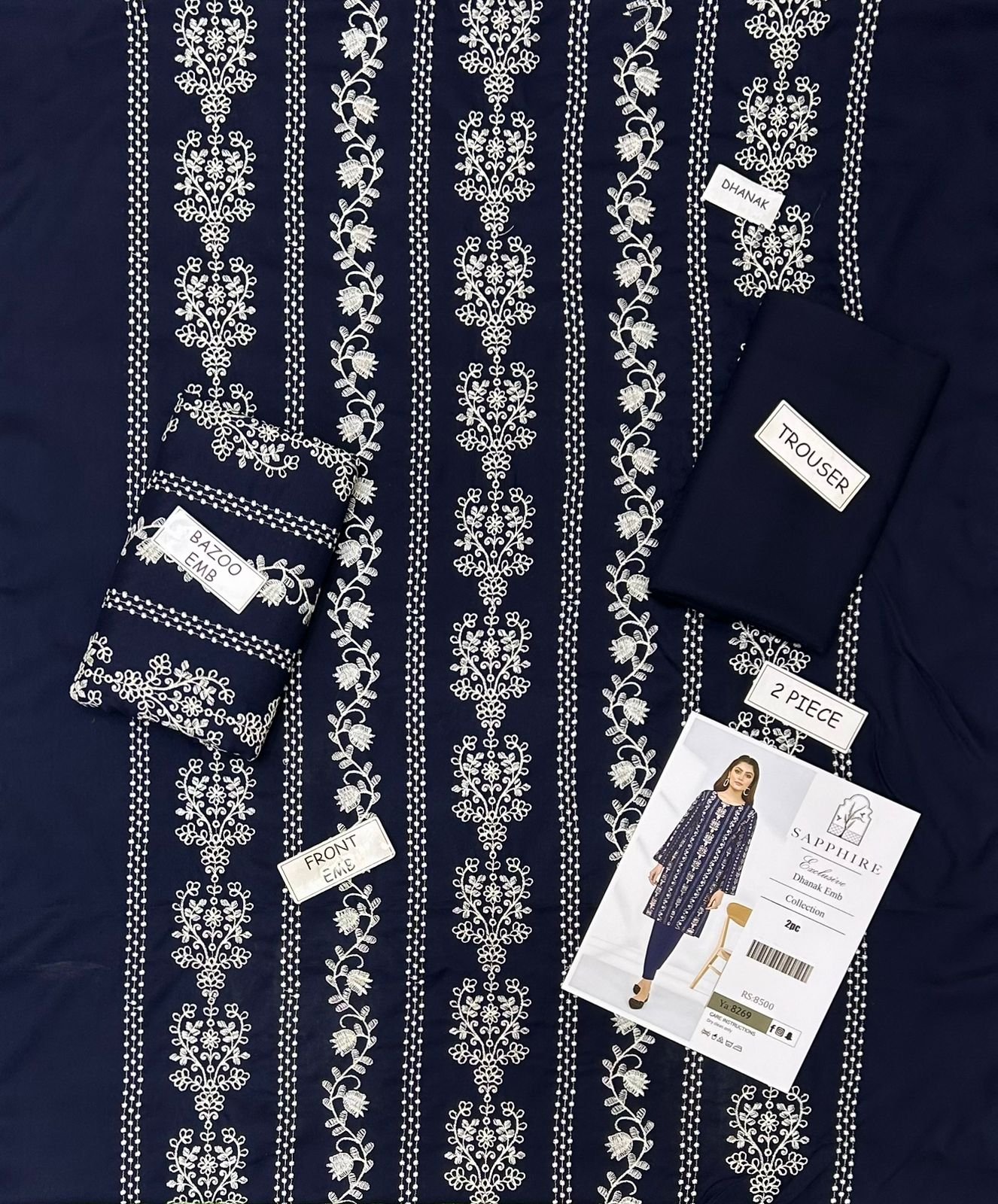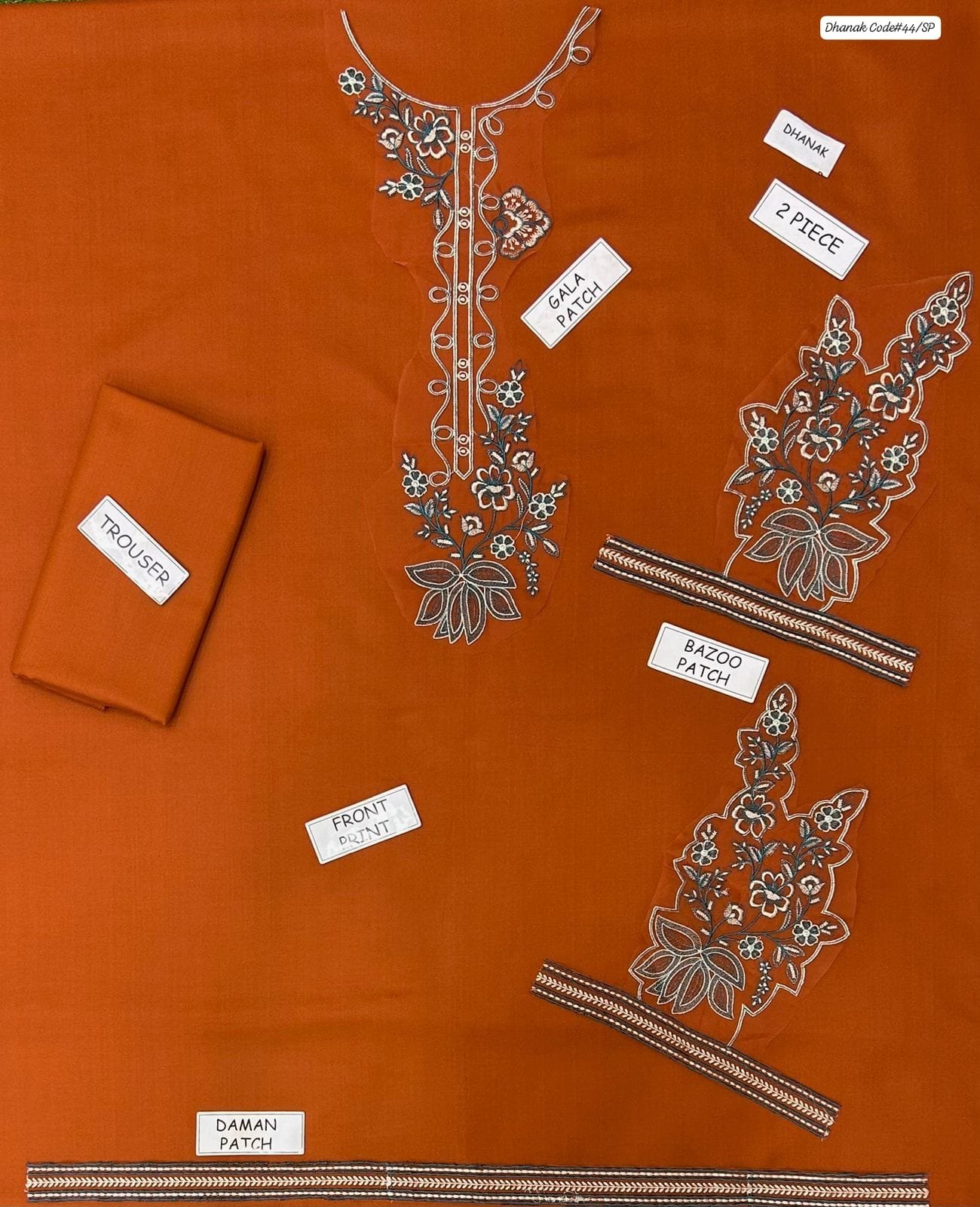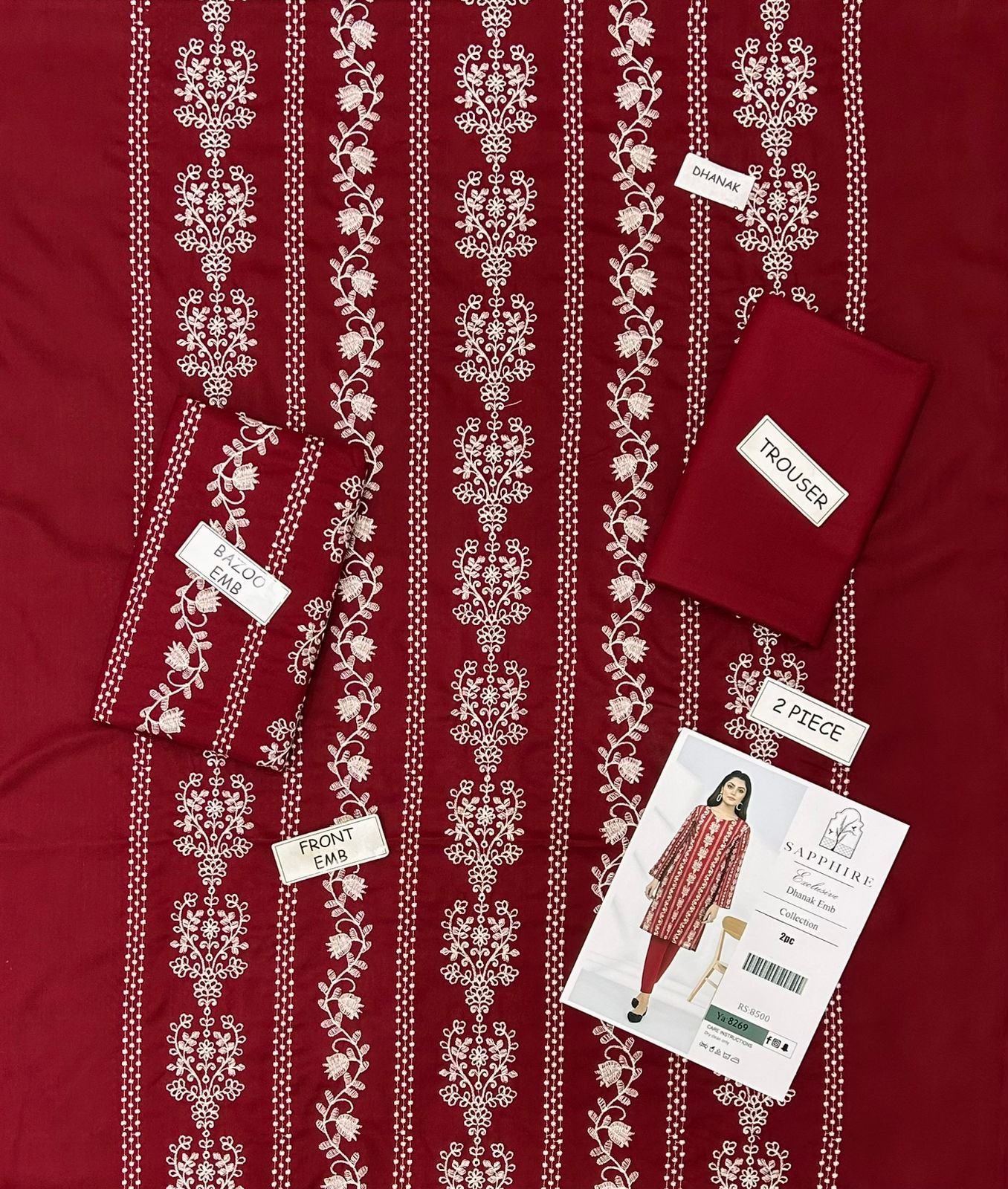 2 piece unstitched Embroided Dhanak dress