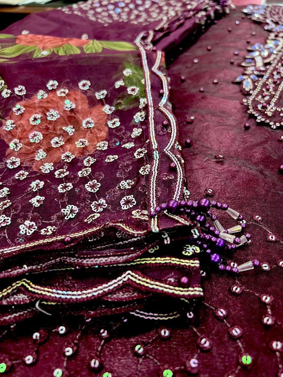 3 piece unstitched organza outfit