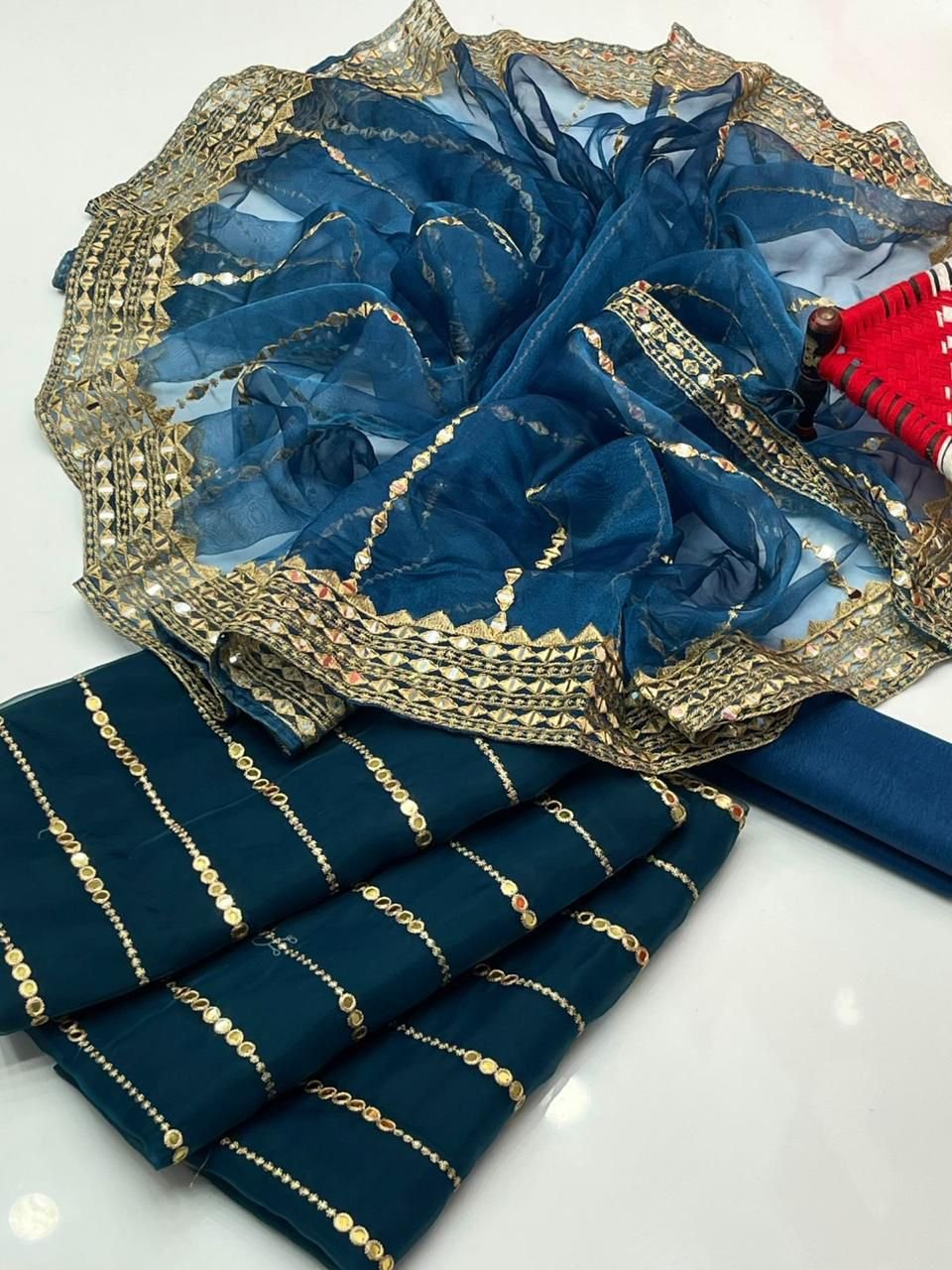 3 piece unstitched organza party wear outfit