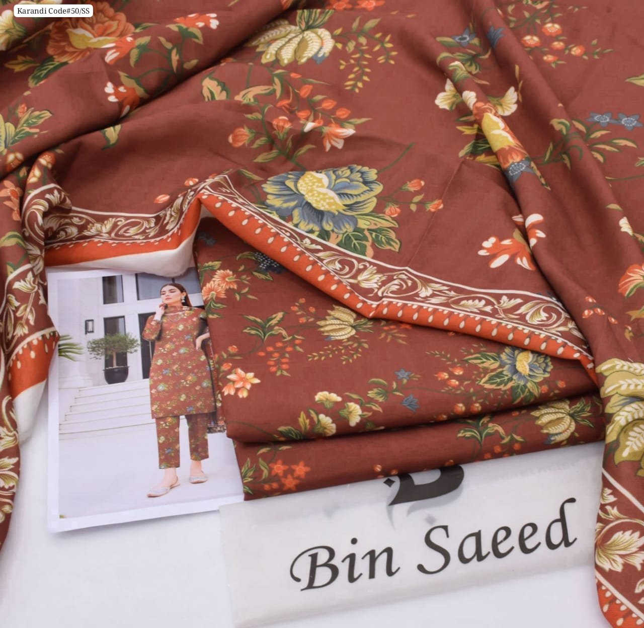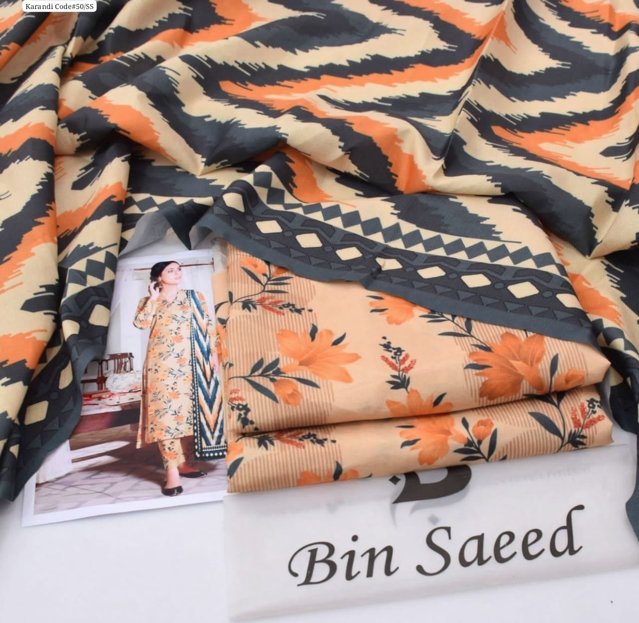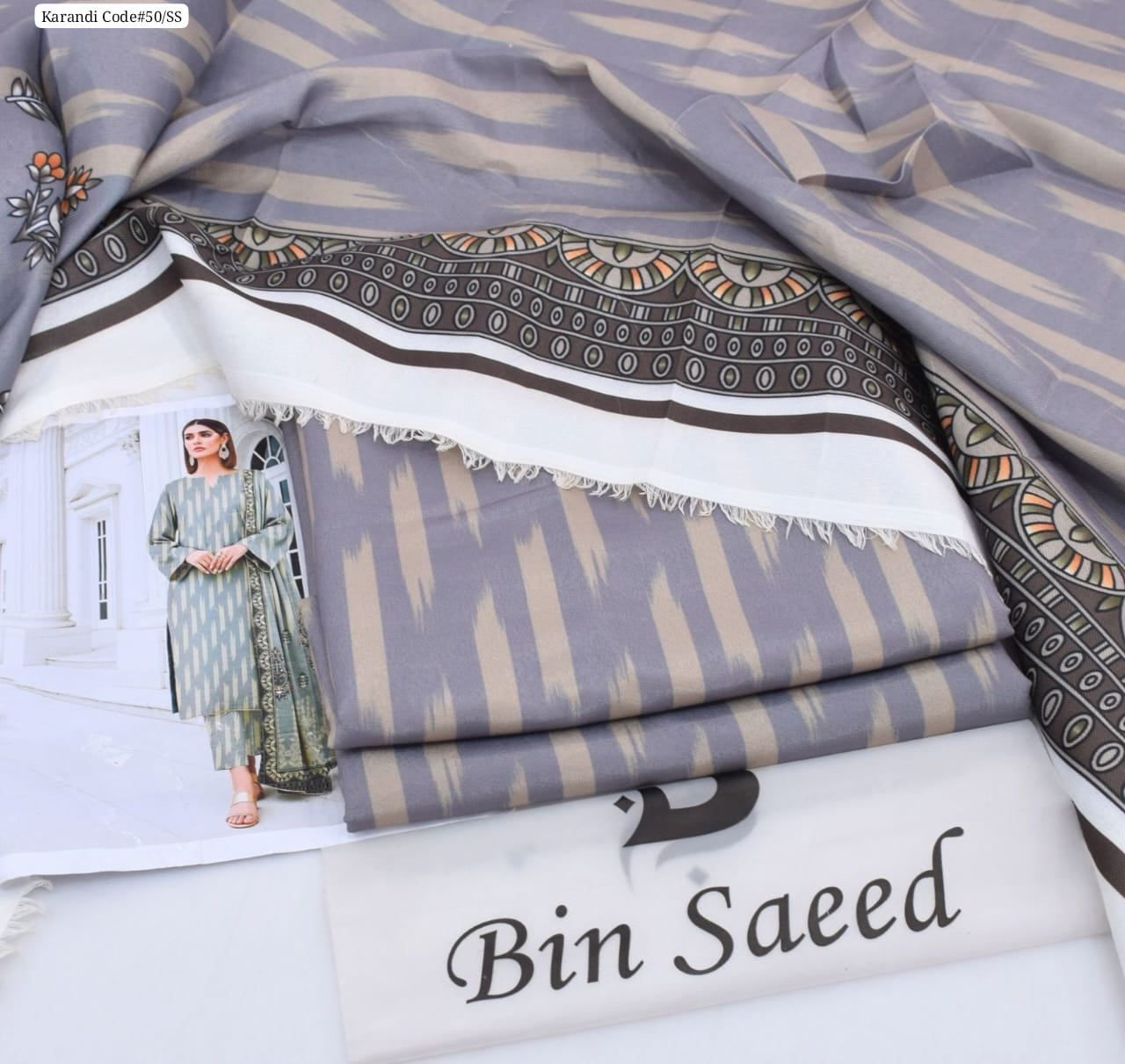 3 piece unstitched Bin Saeed original karandi dress