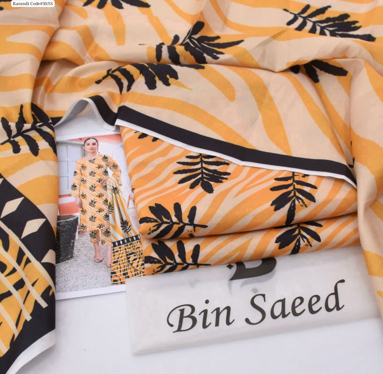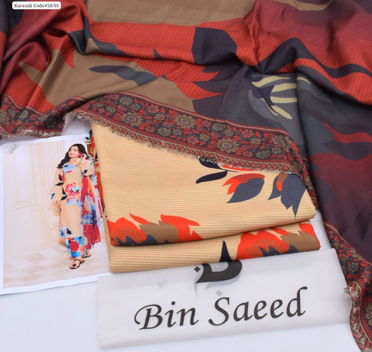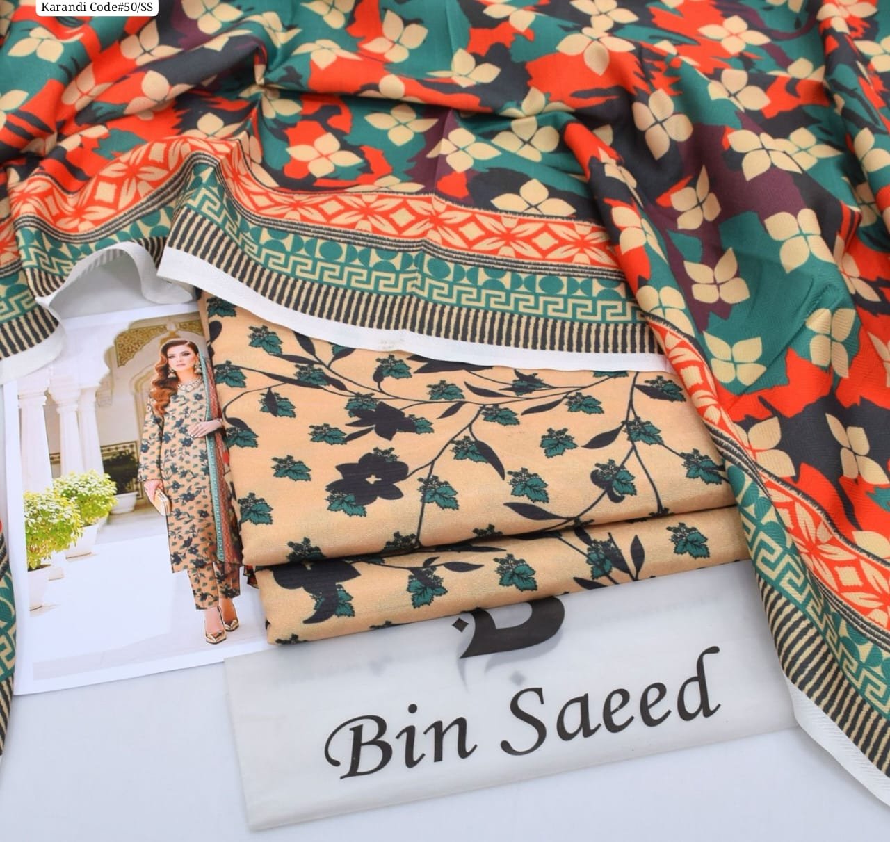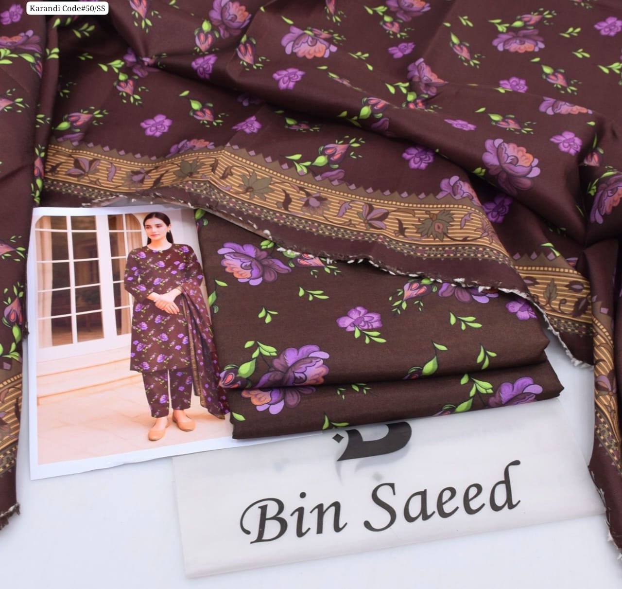 3 piece unstitched Bin Saeed original karandi dress