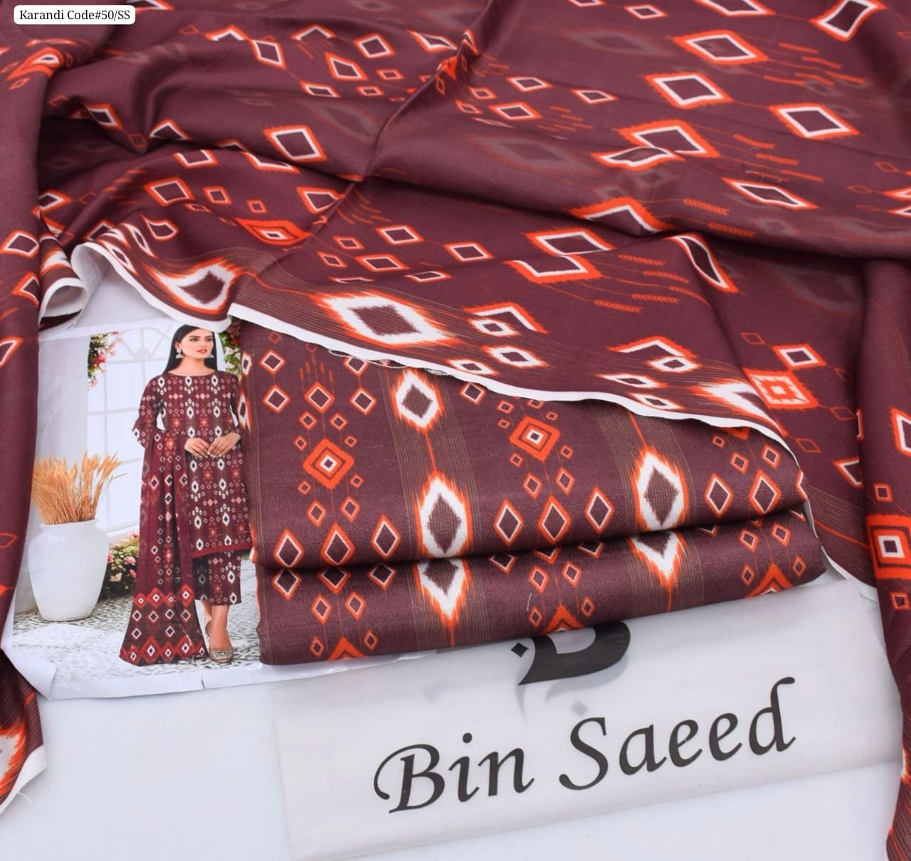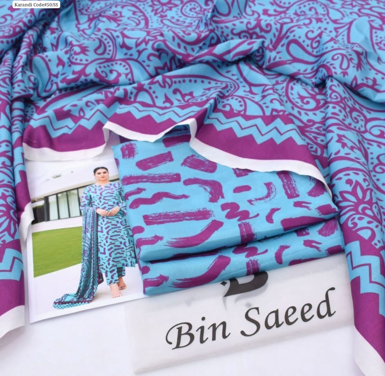 Be the first to review “3 piece unstitched Bin Saeed original karandi dress” Cancel reply