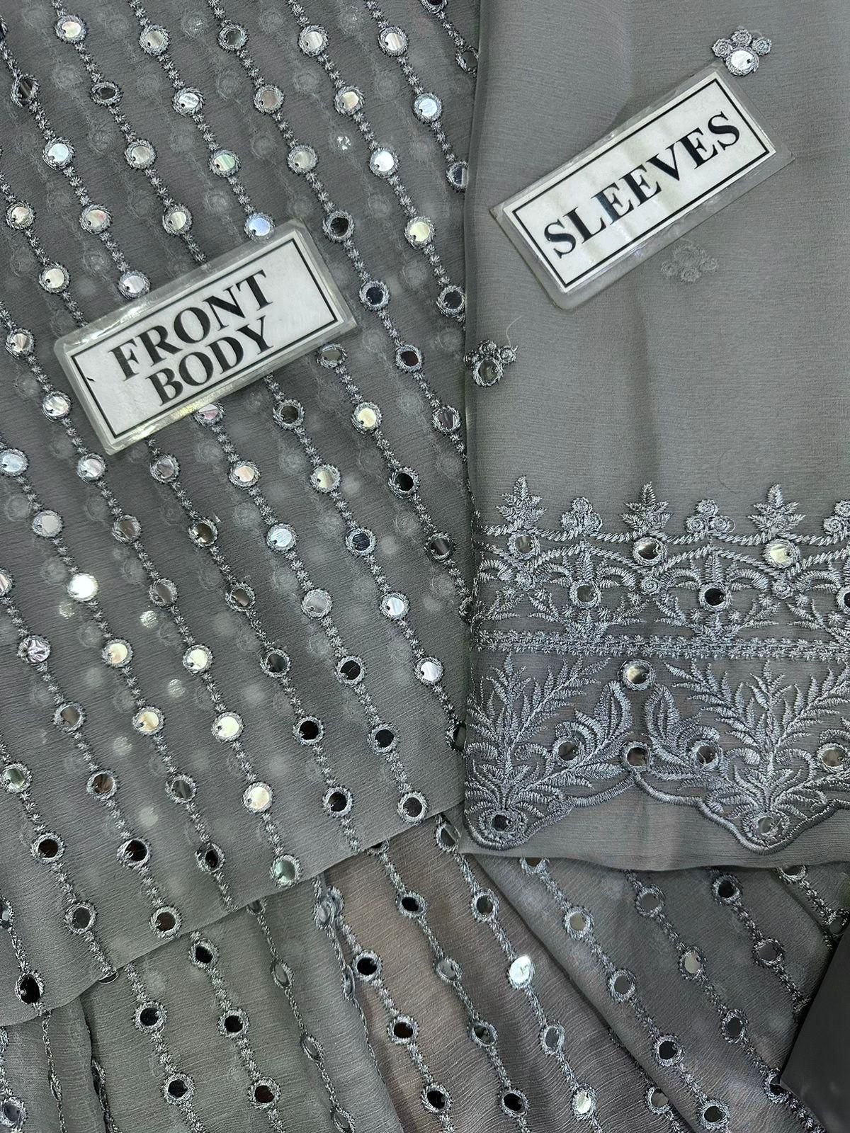 3 piece unstitched chiffon Embroided dress