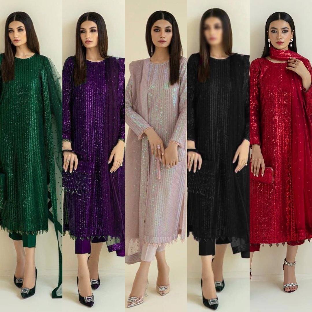 •Semi Pure Chiffon Front Embbroidry with heavy sequence work extremely high quality finishing