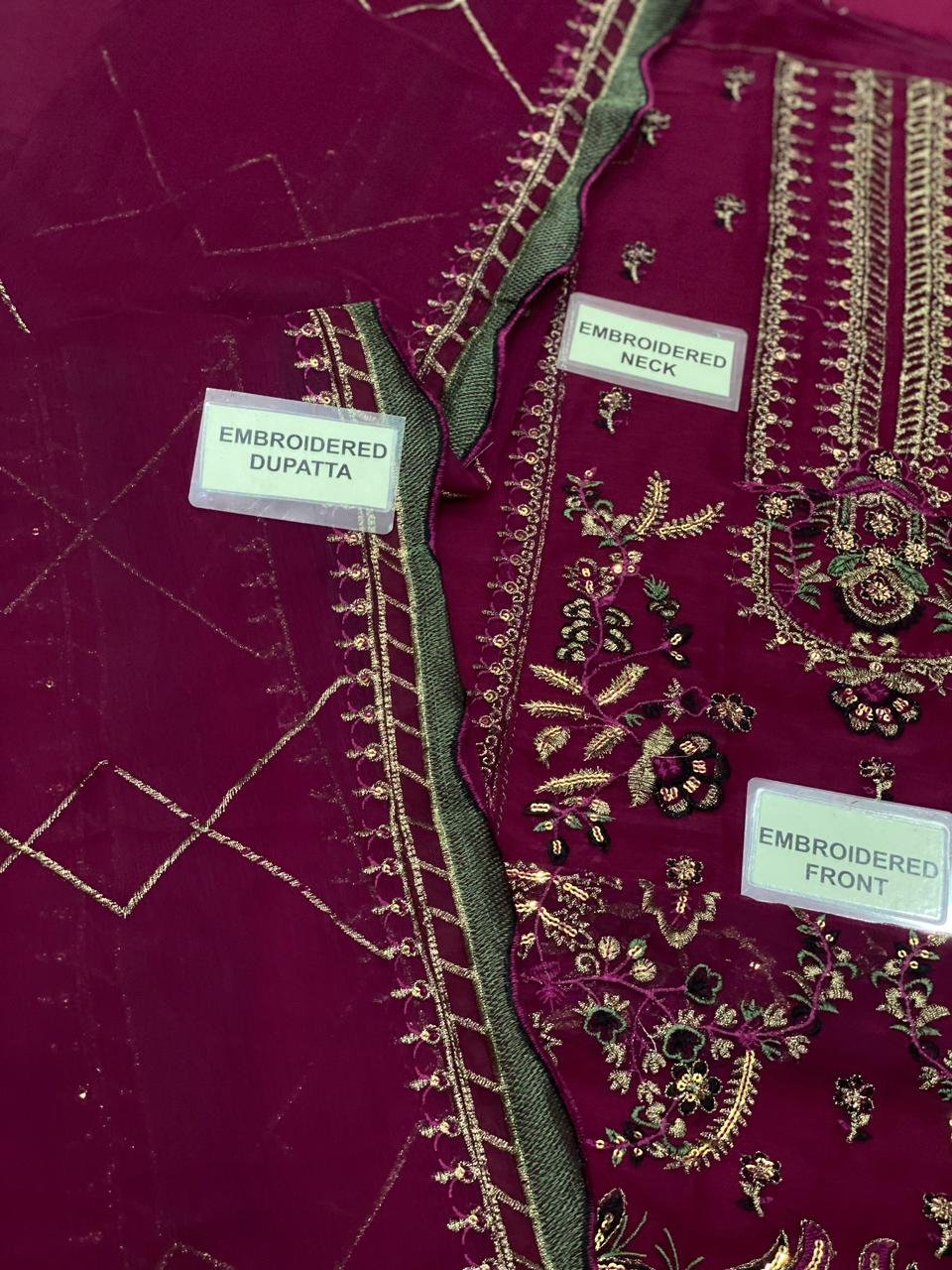 3 piece unstitched chiffon heavy embroidery wedding wear dress