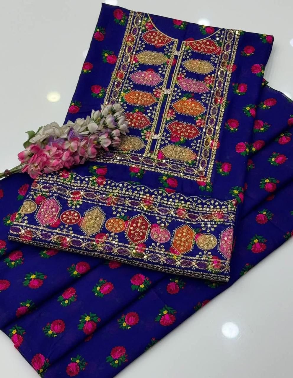 ANEELA’S susi embroidered sequence printed unstitced 2pc✓