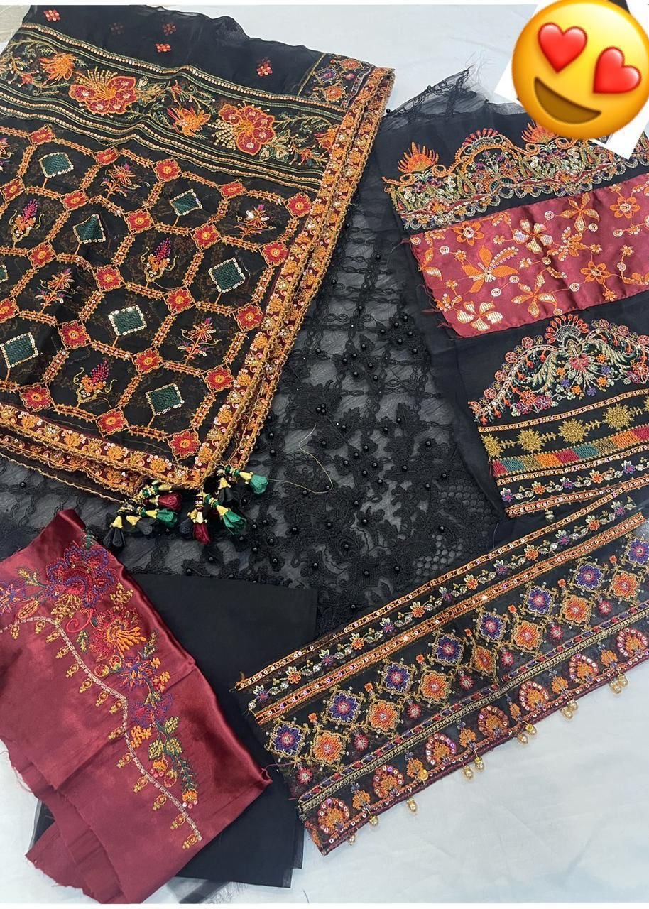 3 piece unstitched organza party wear outfits