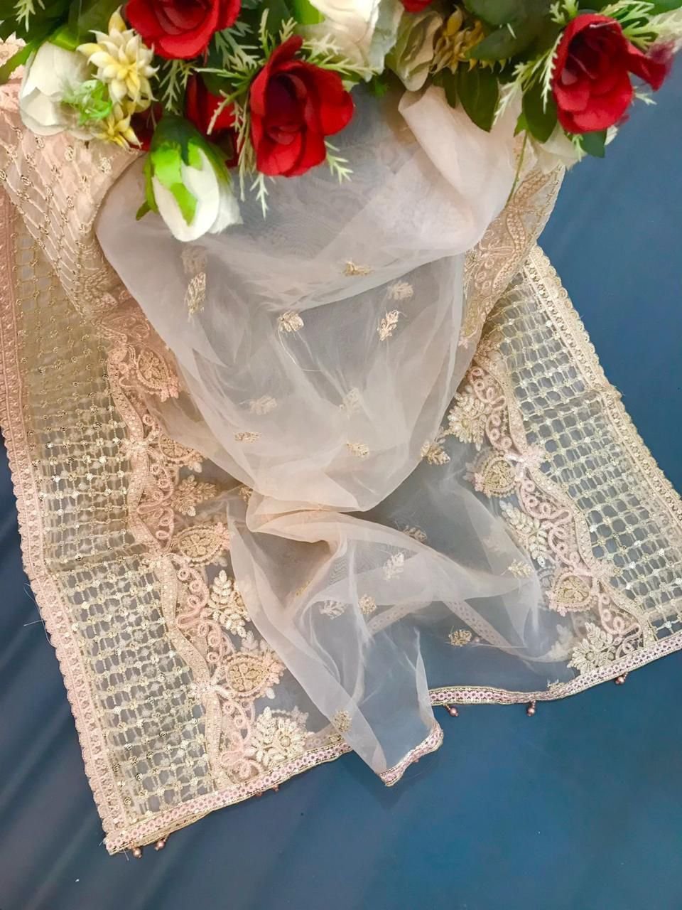 Heavy sequence net embroidery duppata