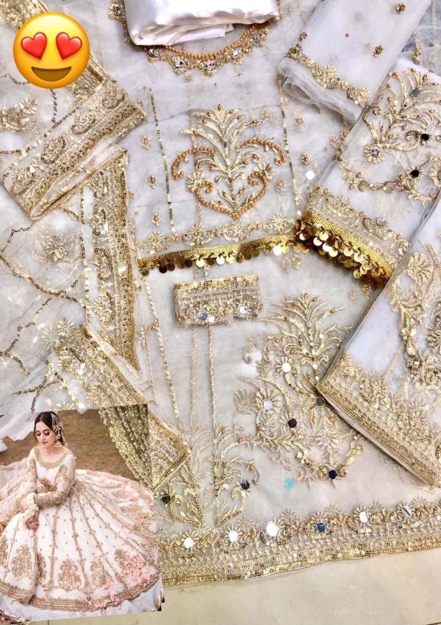 Front* full embroidery having Sequence work on it {as original pattern} with Hand work Mirror work And lace..