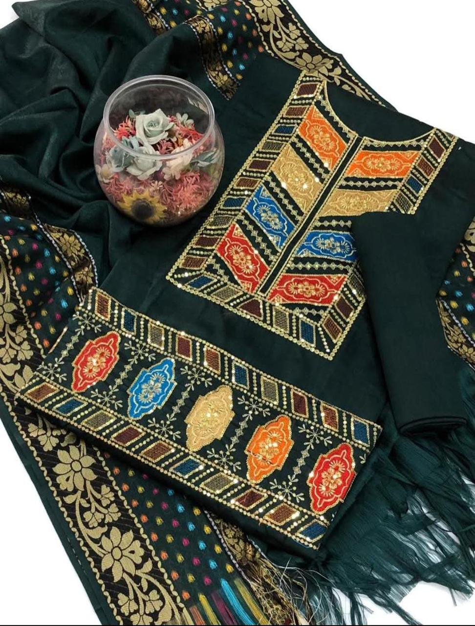 EMBROIDERED SUSI 3mm INDIAN BANARSI unstitced 3pc✓