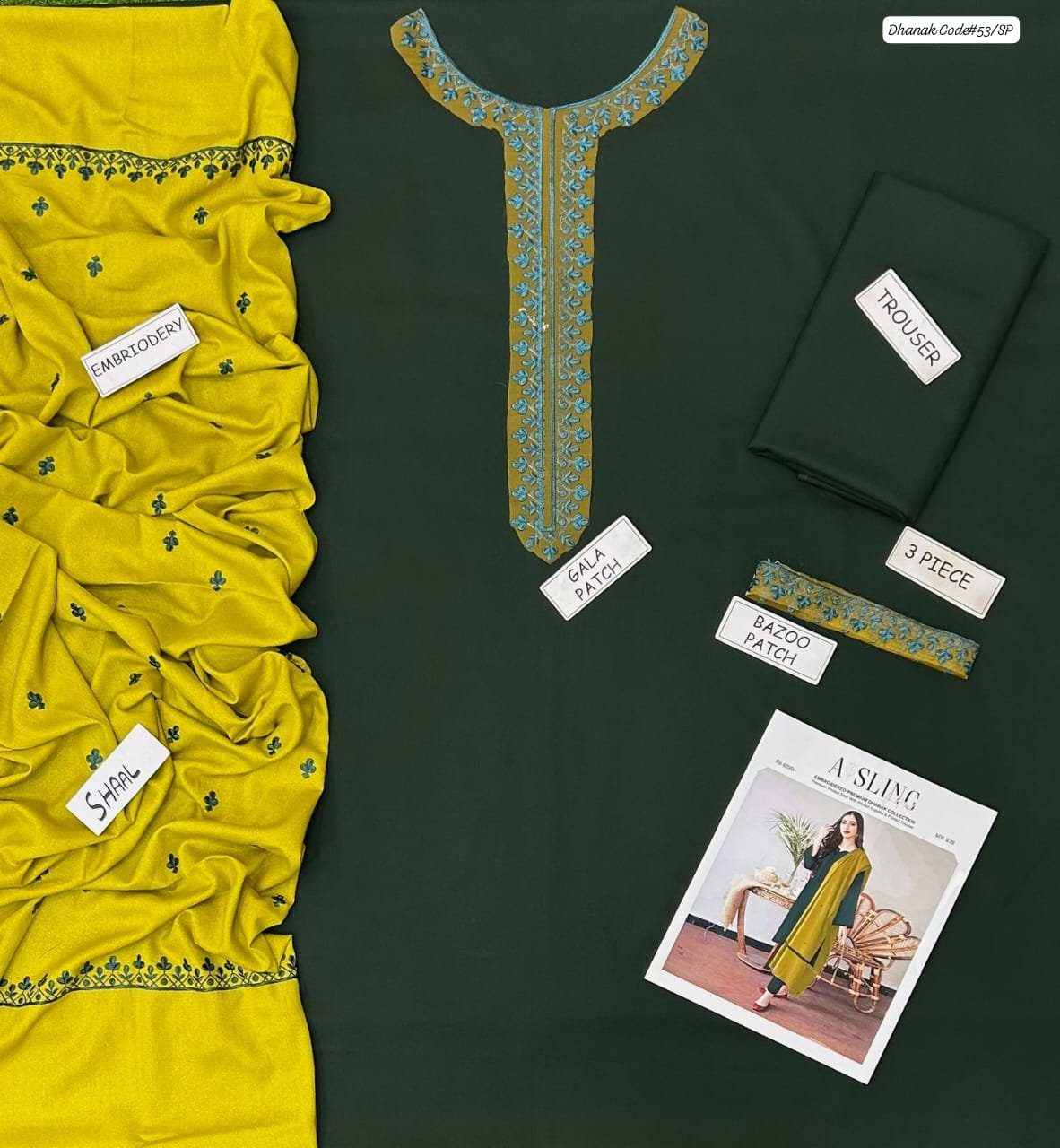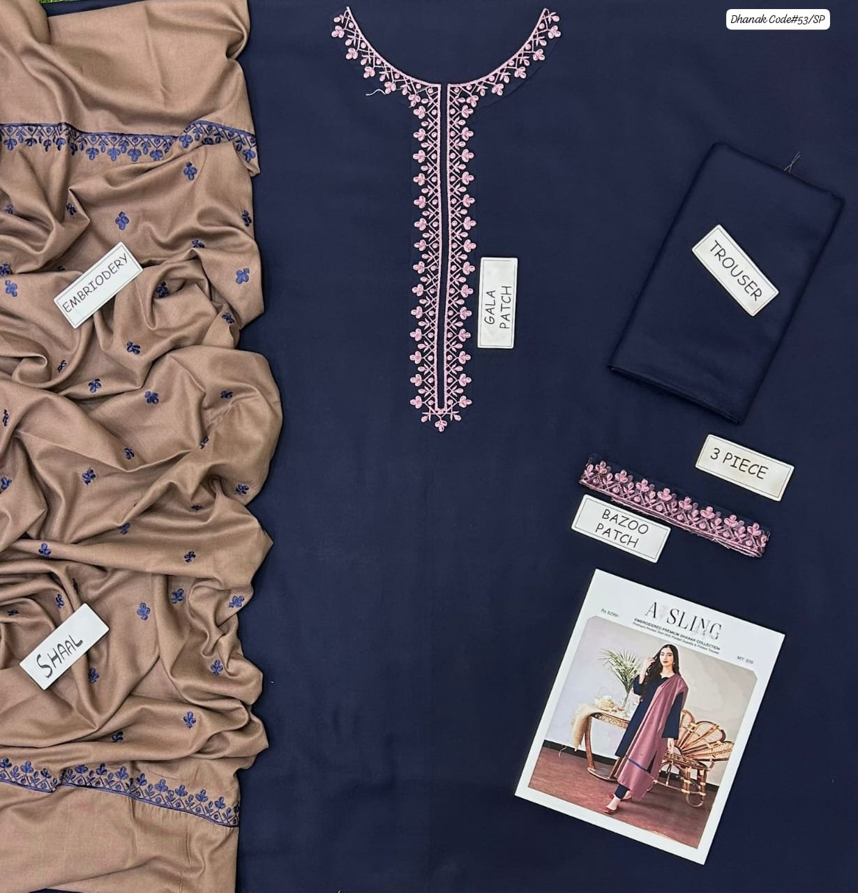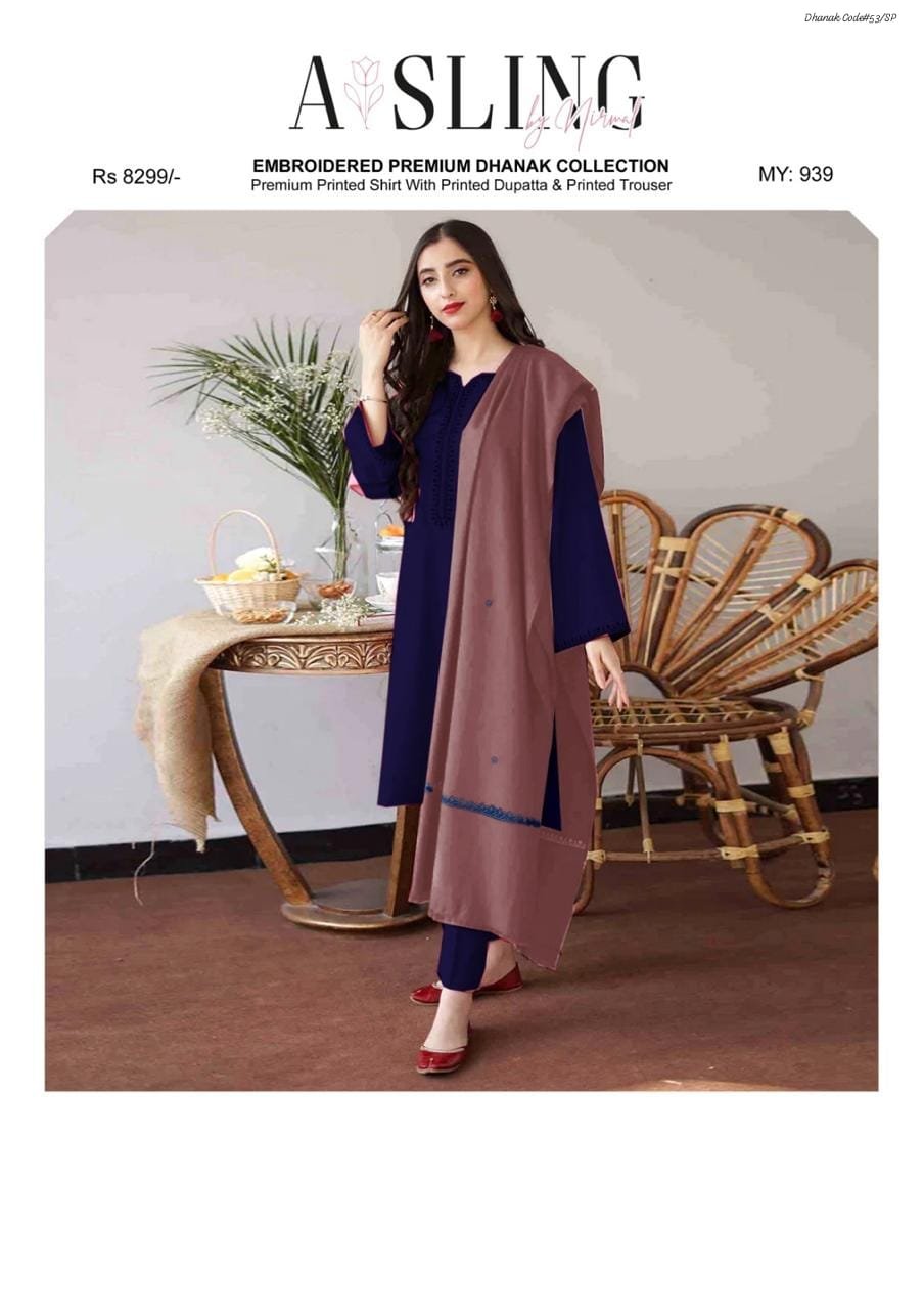 Asling 3 piece unstitched Dhanak dress with wool shawl
