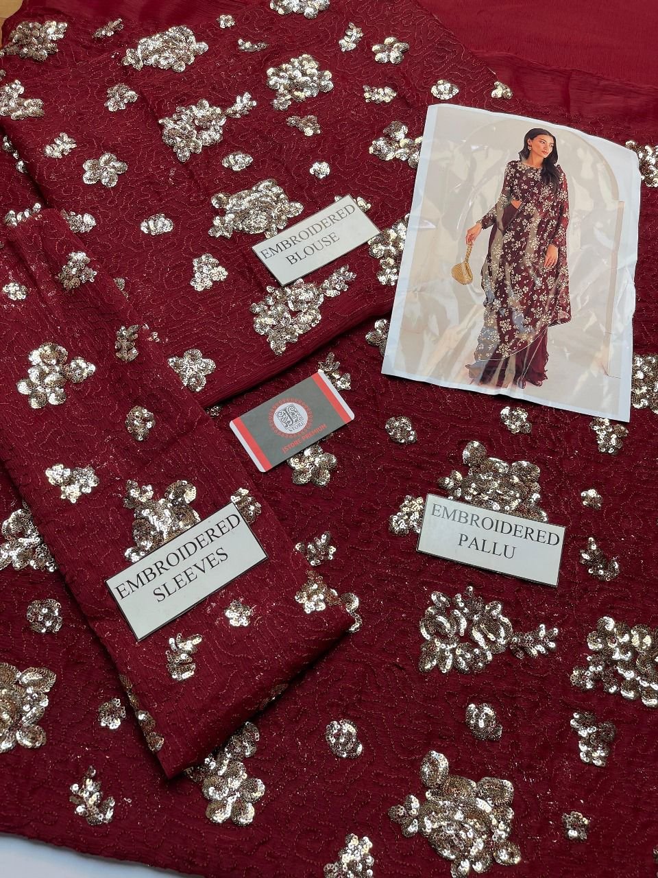 Be the first to review “Chiffon Embroided Saree Black & Maroon colors” Cancel reply