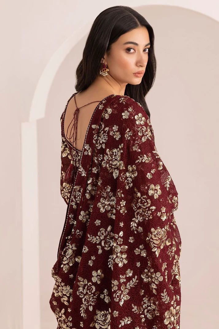 Chiffon Embroided Saree Black & Maroon colors