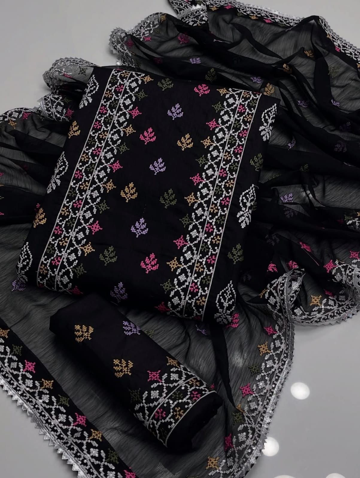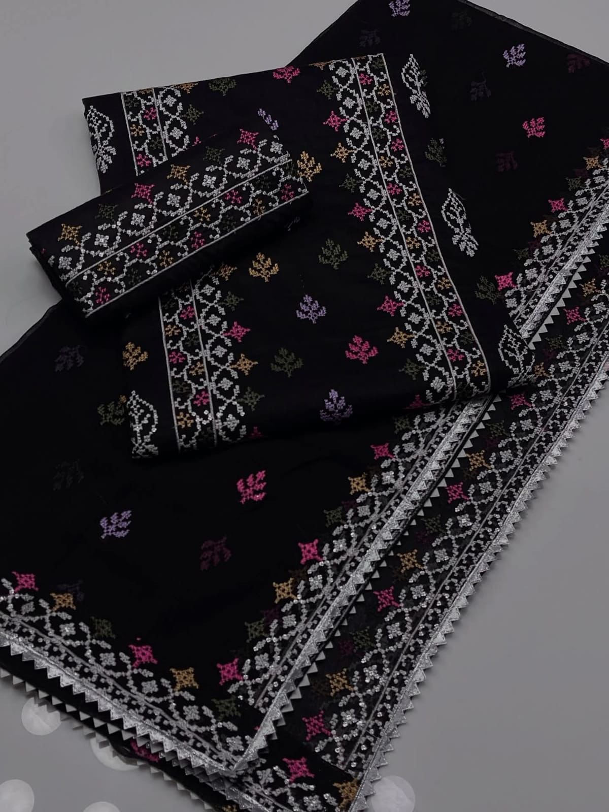 CROSS STICH LAWN COTTON MULTI EMBROIDERED SUMMER UNSTITCHED 3pc✓*