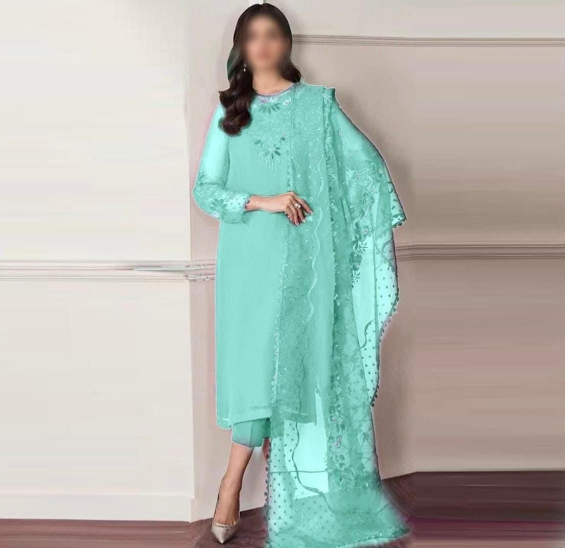 Unstitched Net Heavy party wear outfits Brand HEER
