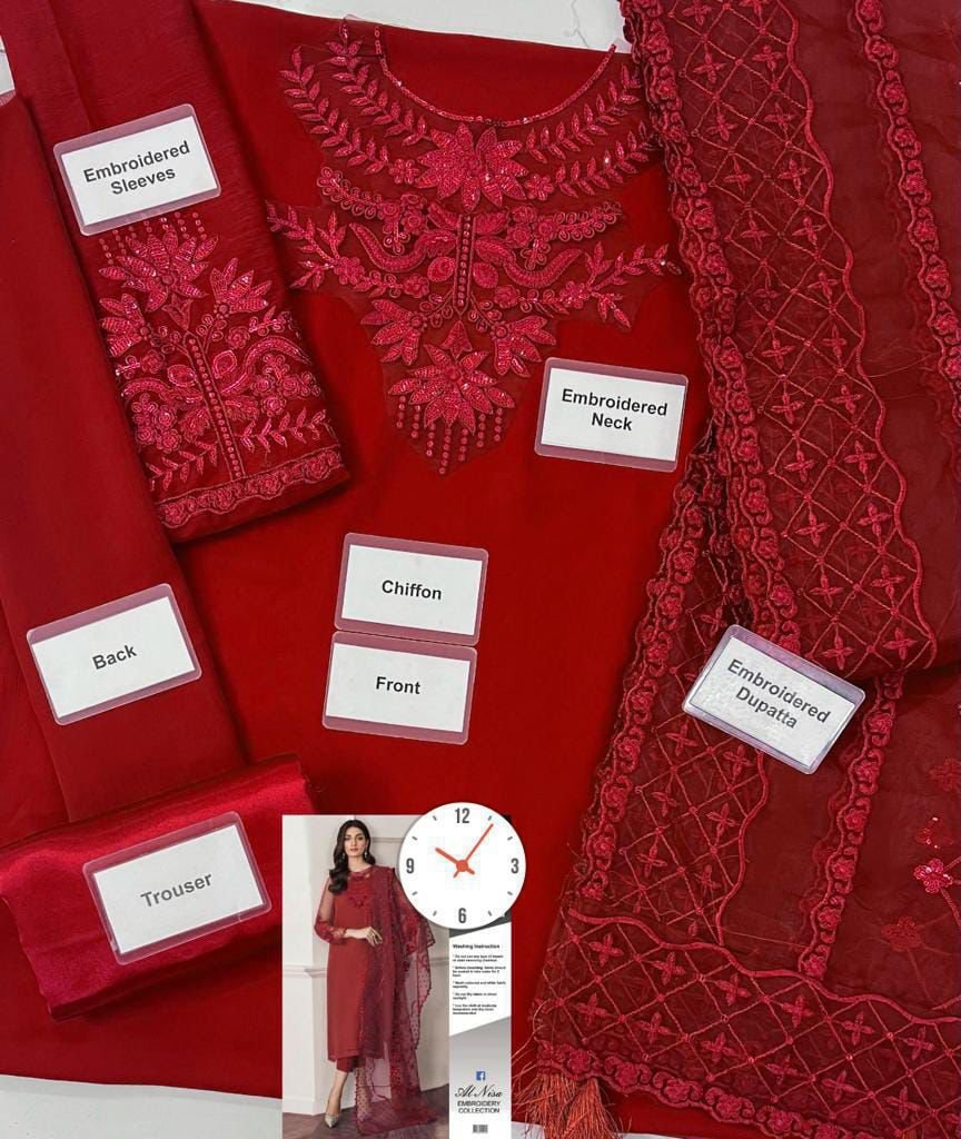 •Embroidered Chiffon Sleeves