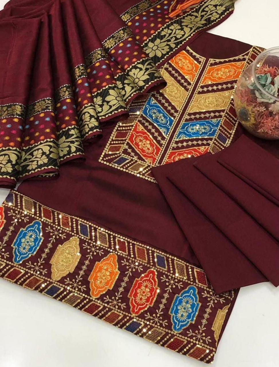 KHADI SILK EMBROIDEREDunstitced 3pc✓