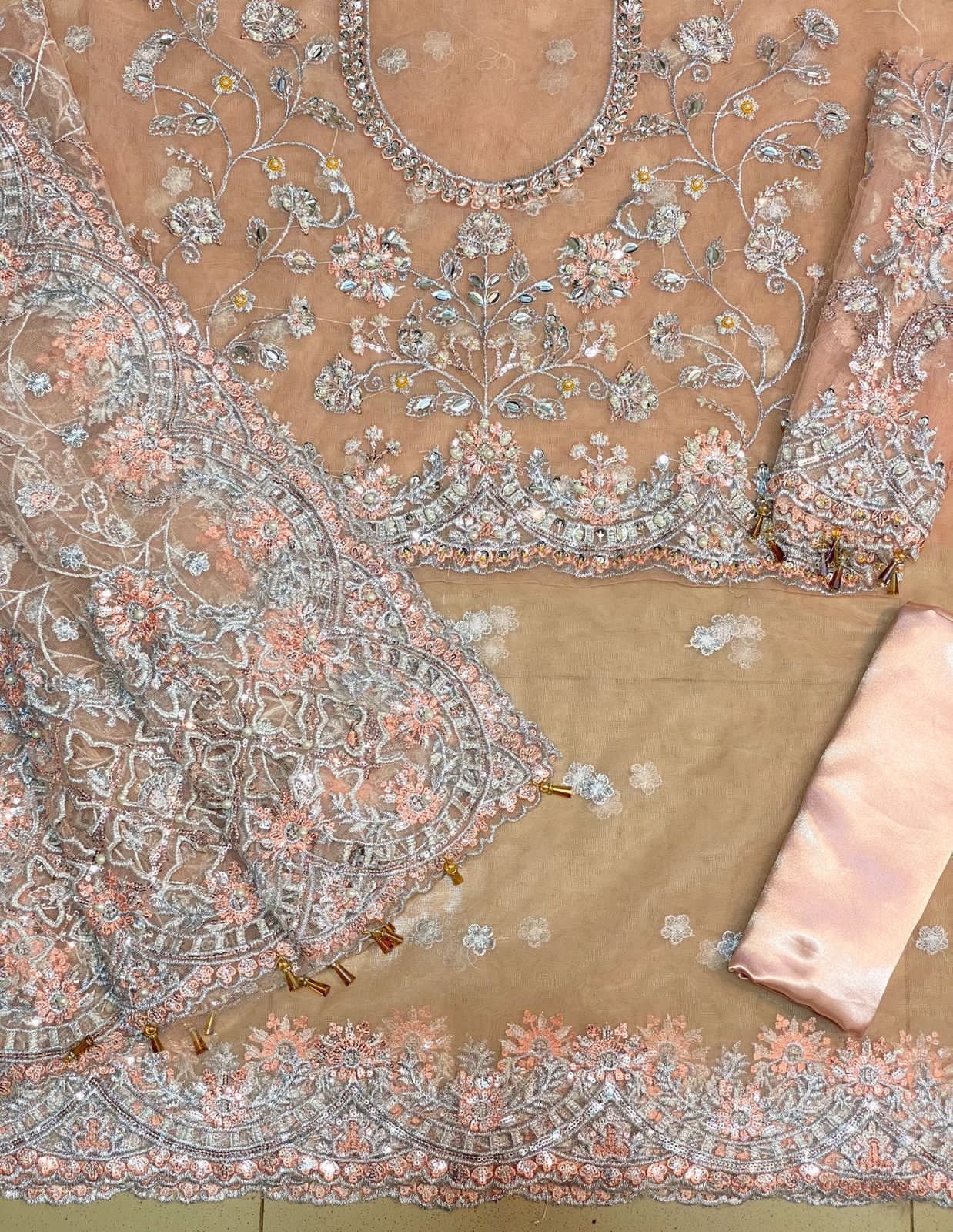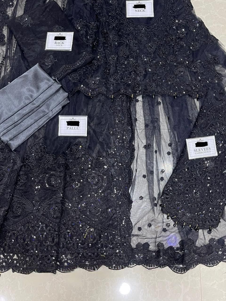 Heavy Embroidered Net Selvees With Heavy Adda Work With Cut Work selvees Cuff and Hanging Tuselss