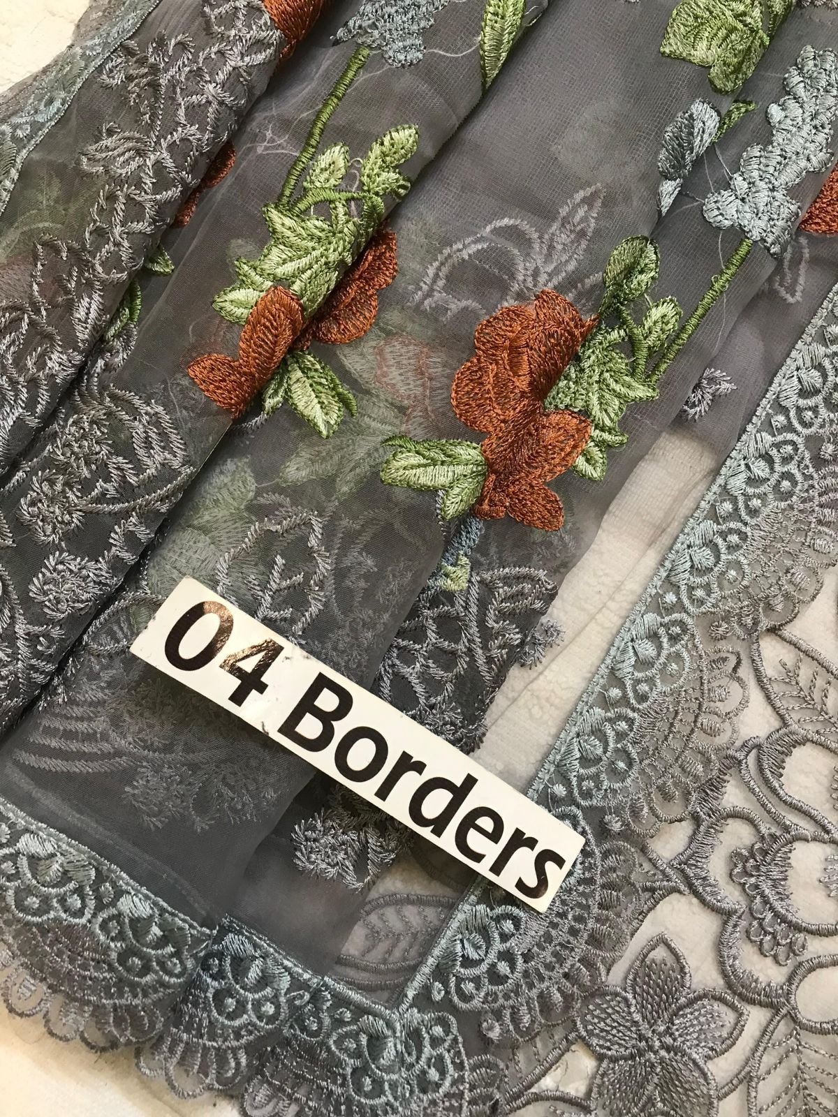 net fully embroidered dupta with 4 side heavy embroidered boarder attach with 2 side heavy embroidered pallou boarder attach